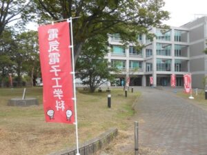 たくさんの旗でみなさんをお迎えします。学科ごとに専用の旗があります
