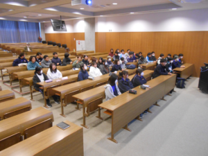 2025年12月11日、日本学生支援機構の東京日本語教育センターから、来年高専3年次に入学予定の留学生46名(残り半分は小山高専だそうです)が来校しました。実は、高専にやってくる留学生は、試験にパスした年に高専に入学できません。1年間の日本語教育を積んだ後、全国の高専に入学します。