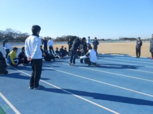 2025年12月28日、市内のオーエンススポーツフィールド陸上競技場で本校教員による走り方教室がありました。市内の中学陸上部が主な対象で30名程度の参加者がいました。