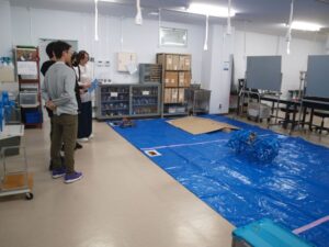 「ロボット操縦体験」は多足で歩くヤンセンリンクロボットやクロウラーロボットを操縦できるという企画で,こちらも卒業研究で作成したロボットです.多くの方に操縦を楽しんでいただけました.