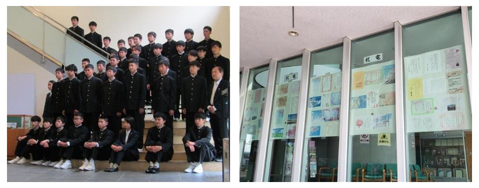 天候に恵まれない中の入学式となりましたが、分散登校開けの総合教育棟には、入学の門出を祝う祝電と希望に満ちた新入生の表情にあふれていました。また足元の悪い中、保護者の皆さまにも、感染対策へのご協力を頂き配信会場よりに式典を視聴いただきました。