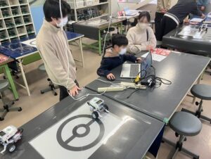 12月6日(土)に公開講座マインドストームを使ったプログラミング講座を開催しました。本講座では、レゴ®マインドストームで作成した車型ロボットを用い、プログラミングによって様々なコースのラインを辿るミッションに挑戦しました。