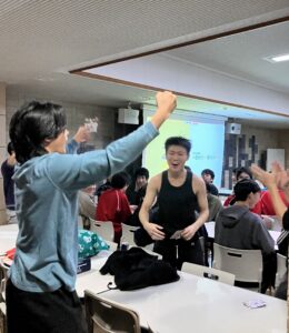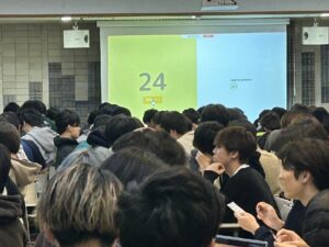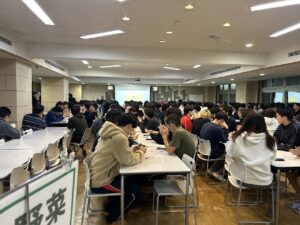 令和7年12月9日火曜日に学寮のクリスマスパーティーが行われました。当日の夕食がクリスマスメニューに変更され、普段よりも豪華な夕食となりました。 午後8時30分からのクリスマスパーティーではビンゴ大会が開かれ、景品には各群長が事前準備したプレゼントが並びました。群長たちの個性が感じられるプレゼントが参加者全員の期待を高め、会場全体は笑顔と歓声に包まれながら、大いに盛り上がりを見せました。 (編集委員会副委員長 機械工学科4年 村岡真菜)